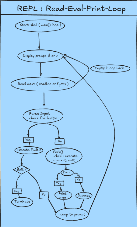 we aren’t making an crazy shell with plugins and configs and all we are making an MVP to learn concepts and all so we will keep things minimal, here we will make an basic plan of our shell what all it should have as as MVP , this of it as an overview